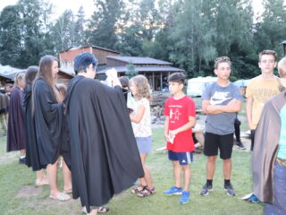 Jásal: „Dnešní první srpnová noc, kdy slavíme svátek boha Lugha, bude výjimečná. Určitě zvítězíme ve všech disciplínách klanového zápolení. Během spánku se mi totiž zjevil bůh Lugha, který nosí štěstí.