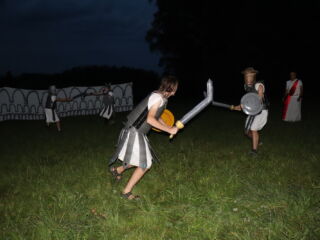 Již po obědě jsme se připravili na příjezd členů pozvaných rodů. Byli jsme zvědaví, kdo všechno dorazí, a již jsme se nemohli dočkat. Všichni přijeli a naše římská obydlí se postupně naplnila. Jsme nadšení, že tolik lidí přijalo naše pozvání. Co nejdříve si je všechny otestujeme, doufáme, že to budou samí dobří bojovníci.