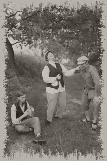 Dunaj a Tomáš se s ní jdou seznámit, poklepou jí na rameno, a neodpustí si ani rozpustilé pozdravení. "Buď zdráva, panno sličná, co že tak sama tady na mezi. Nepotřebuješ pomoci od švarných jinochů?"