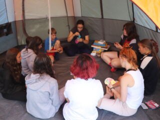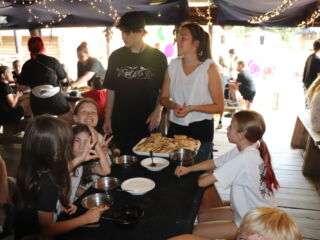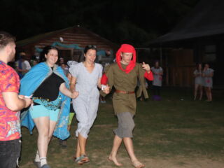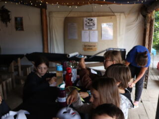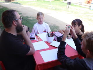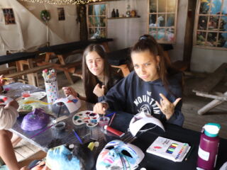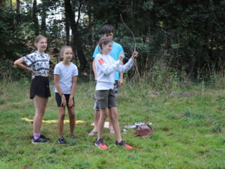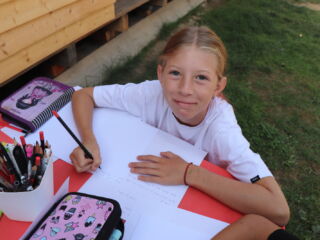 Dopoledne nás čeká poslední kolo volitelných programů. Na výběr máme kosmetický salon, psaní pohádky, střelbu a rytířské hry, výrobu masek, stolní a sportovní hry, zálesáckou školu a školu znakové řeči. Všichni si vybrali, co se jim nejvíce líbilo, a dopoledne si užili.