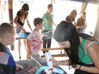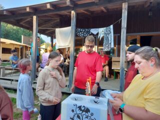 Celý den se střídají jednotlivé týmy a vytvářejí svoje budoucí překvapující barevné kombinace. Ostatní oddíly mezitím využívají čas třeba k vytvoření oddílové vlajky.