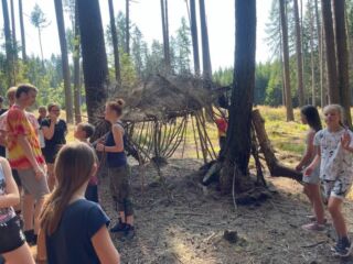 Na ranním nástupu jsme dohnali vše, co jsme nestihli večer – balíčky, odvážení smůly i kontrolu pohádkové “výzbroje”. Pak se týmy rozešly k oddílovým programům. Vesměs se všichni zdržovali v lese, protože opět bylo velké horko.