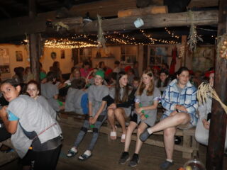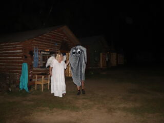 No, dopadlo to nad očekávání dobře. Všechny domečky jsou postaveny a se značným zpožděním vyrážíme zpět do tábora na večeři. Pochutnali jsme si, ale nástup začíná až za tmy, tak jsme ho udělali raději v nají pohádkové jídelně. Z ničeho nic se mezi sruby zase objevil Herňajs. Uriáška na něj hned vystartovala, co že to zase vyvádí a že ho asi bude muset odnést do pekla. Ale Petronela vidí, že je to jen nešťastné roztomilé stvoření a snaží se ho uklidnit a zjistit proč nám vlastně pohádky kazí. Herňajs se nás přece jen ještě bojí, ale řekl nám, že je mu smutno, že nemá žádnou pohádku, kde by se mohl zabydlet a proto že se snažil usadit v různých pohádkách, ale odevšad jsme ho vyhnali. Než jsme stačili vymyslet nějaký plán, zase nám s kňouráním a herňajsováním utekl do lesa.